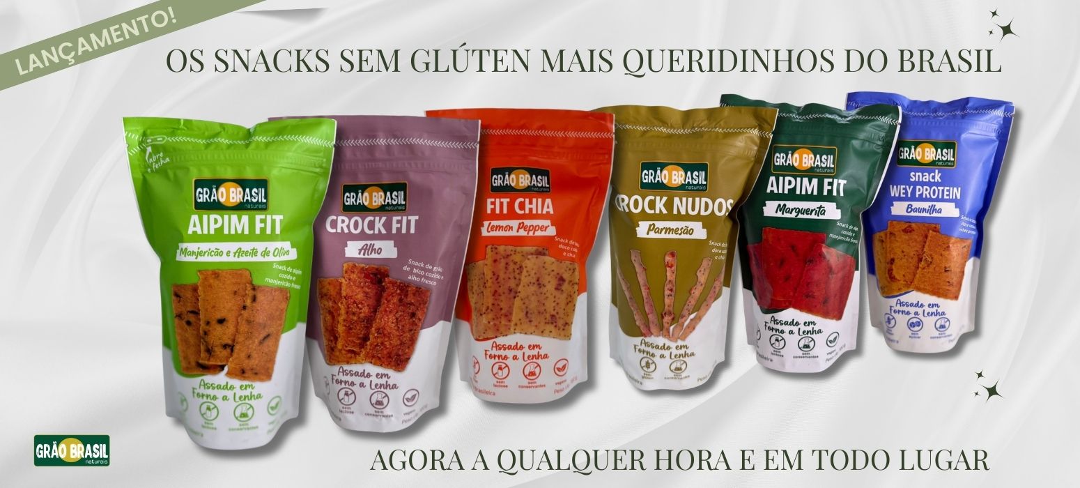 A Grão Brasil Naturais é uma empresa familiar que se orgulha do que faz, produzindo biscoitos sem glúten saudáveis com ingredientes de verdade. A principal matéria-prima dos nossos biscoitos são ingredientes in-natura. Nosso processo é artesanal e simples: cozinhamos o ingrediente principal (batata-doce, aipim, grão de bico ou cenoura) e preparamos nossos deliciosos biscoitos, juntamente com temperos frescos como alho, manjericão e outros, tudo sem conservantes ou aromatizantes e assados em forno à lenha. Toda essa exclusividade para fazer a diferença na sua vida!